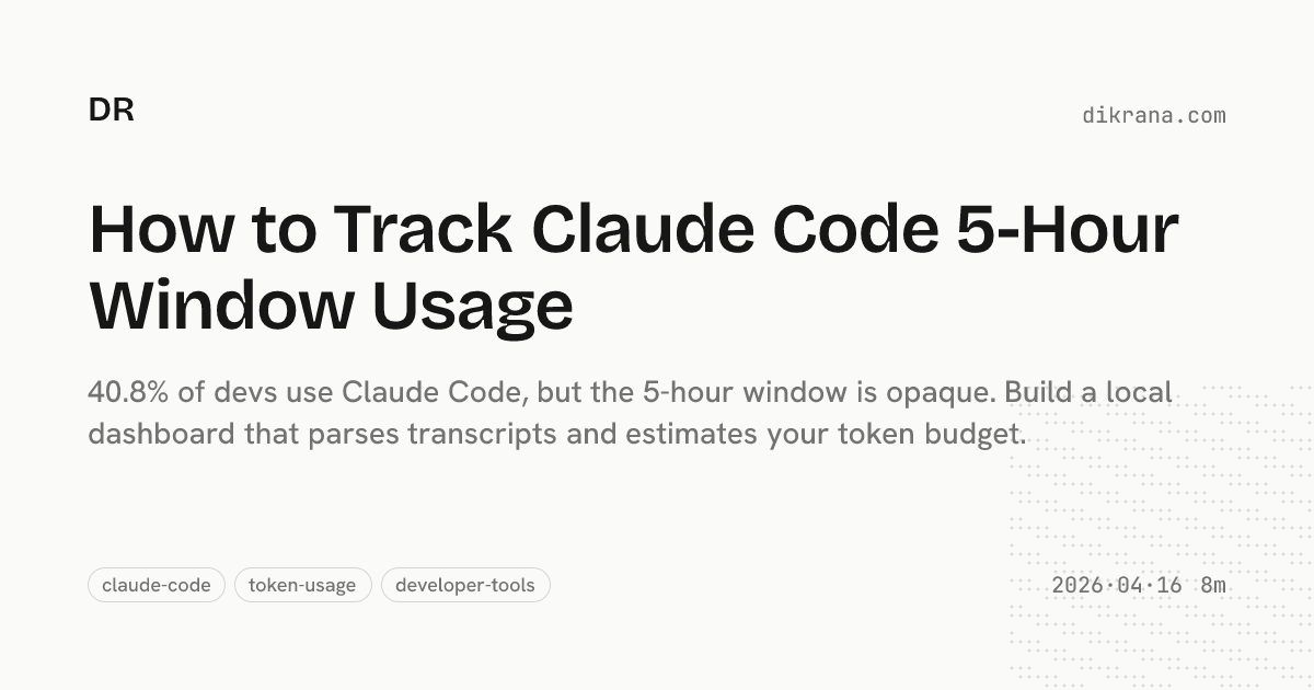What you can access locally: Claude Code writes every assistant response to JSONL transcript files, complete with token breakdowns. And the /usage command returns that percentage plus a reset timestamp. Those two pieces are enough to reconstruct the full picture.